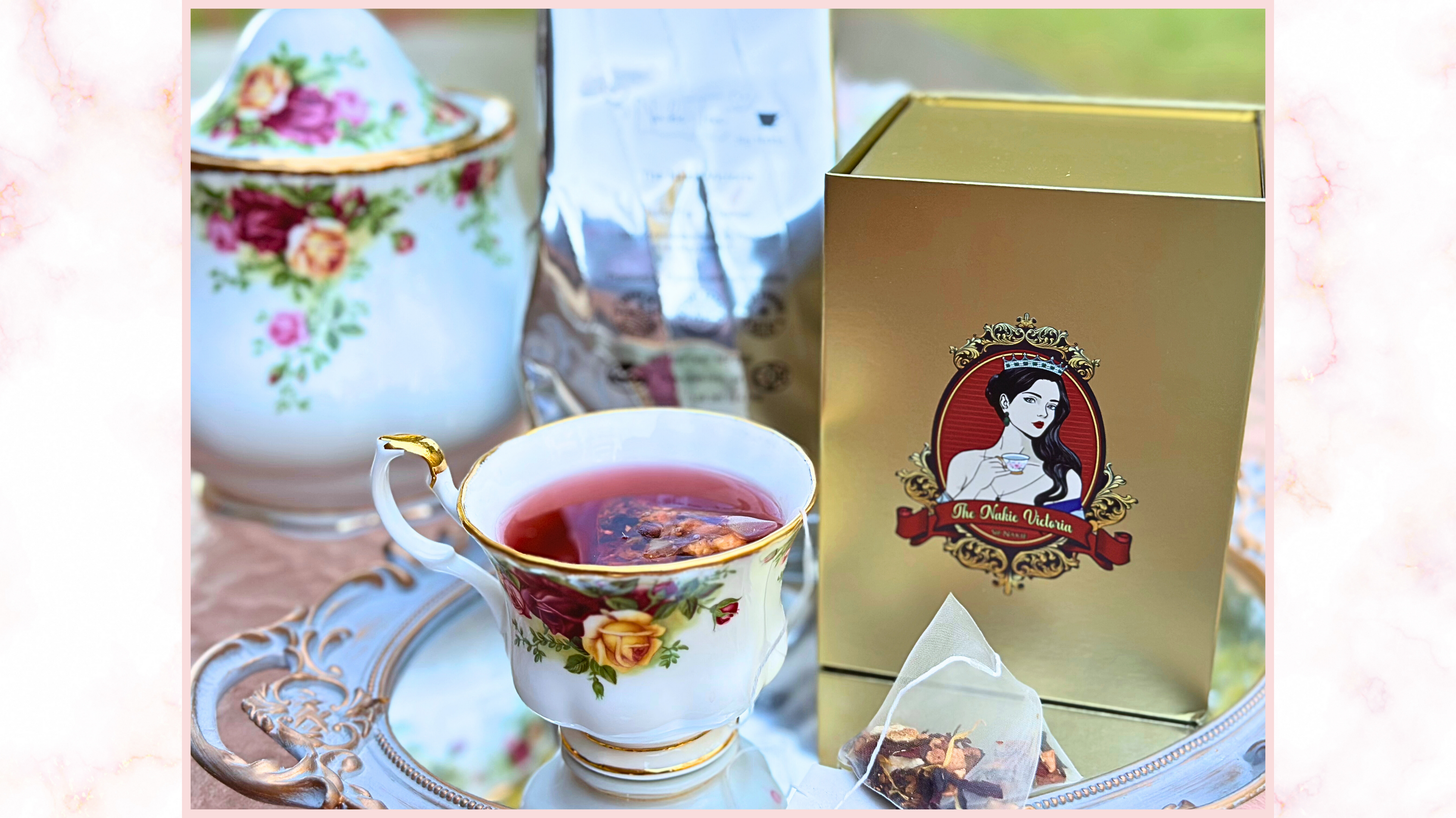 Step into the grandeur of Queen Victoria's world with The Nakie Victoria tea. This exquisite blend captures the essence of the Victorian Era. This sensual blend combines cinnamon, ginger, apple, cornflower, cardamom, hibiscus, and cloves... flavors that delighted tea enthusiasts during this era of elegance and refinement. Raise your teacup, and indulge in the flavors that defined an era of sophistication, progress, and grandeur.